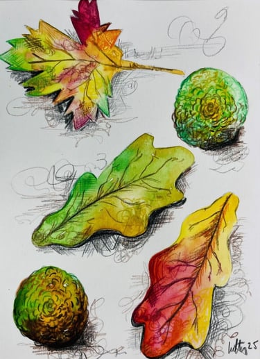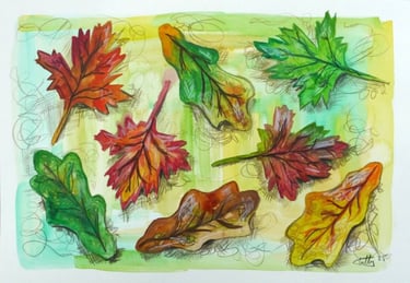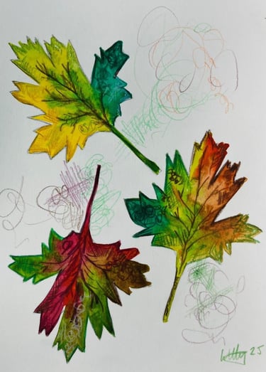Walking through the woodland, I was struck by maple leaves blazing with bold, bright colour. These moments sparked a desire to study and preserve their intensity using watercolour medium that can be unexpectedly powerful when the balance of water and pigment is just right.