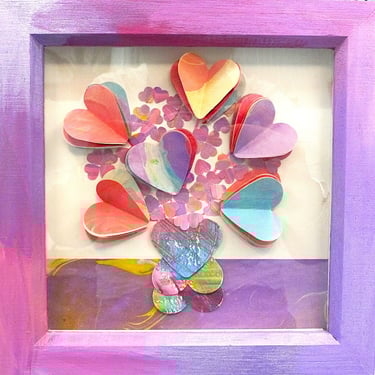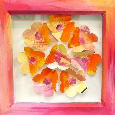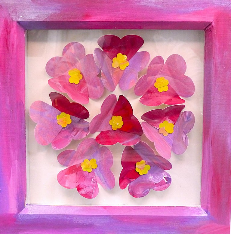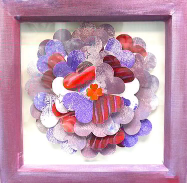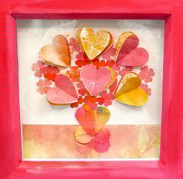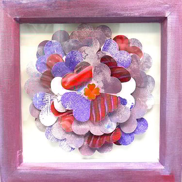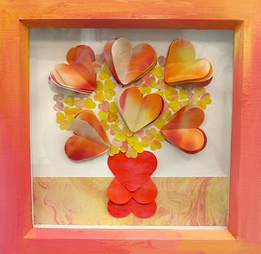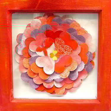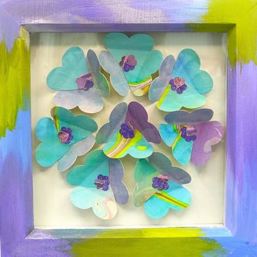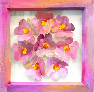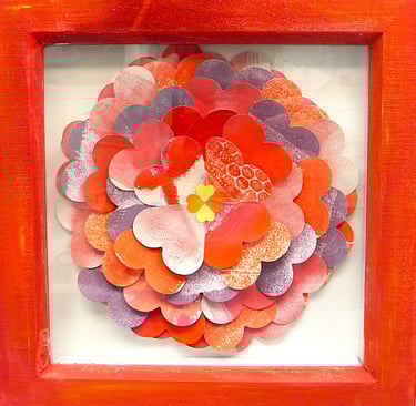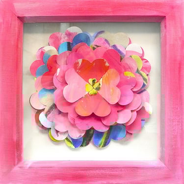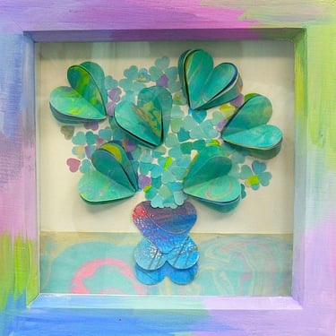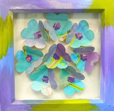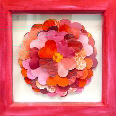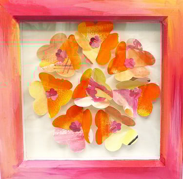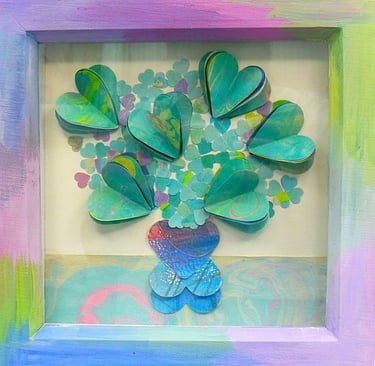 I am a collector of coloured papers, palettes, marbling, collage, painted scraps, pencil studies. These “forever blooms” are formed from artworks that no longer served their original purpose but, when cut down and reshaped, take on a life of their own.