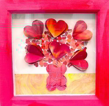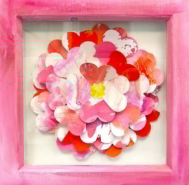 Hours of cutting, arranging, and combining colour allow these fragments to become something new: an everlasting bouquet with its own character and charm. Each piece finds a fresh home in this series, created just in time for gifting during Valentine’s, where colour becomes a gesture of care and renewal.