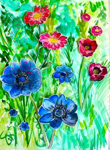 Imagination sits at the centre of my creative process, and colour is the thread that guides all my work. These florals, drawn with a freedom of line, celebrate the shifting beauty of nature—always forming, swirling, and renewing itself through the seasons.
