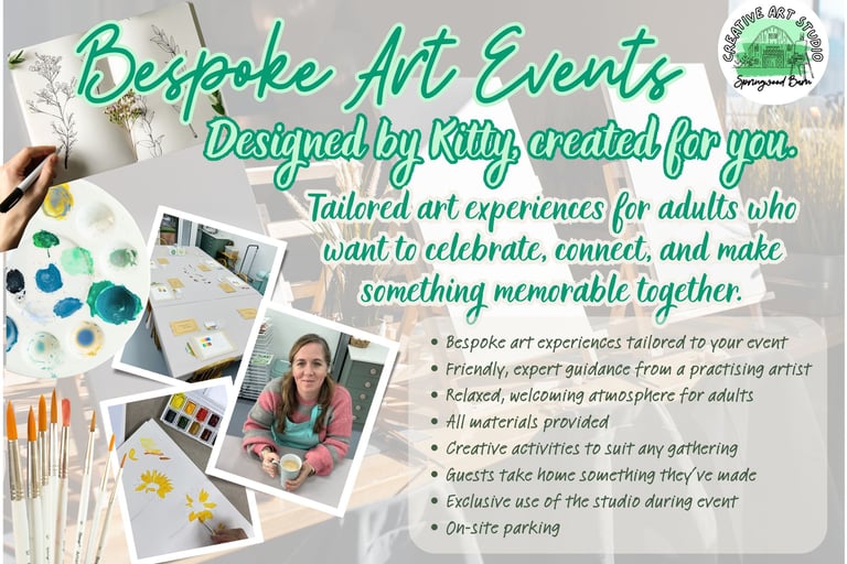 Tailored art experiences for adults who want to celebrate, connect, and create something truly memorable together. Are you marking a milestone, wanting to gather with friends, or simply enjoying the pleasure of making with others. These sessions blend creativity, conversation, and a sense of occasion, offering a warm, relaxed space to slow down, try something new, and leave with both a finished piece and shared memories.