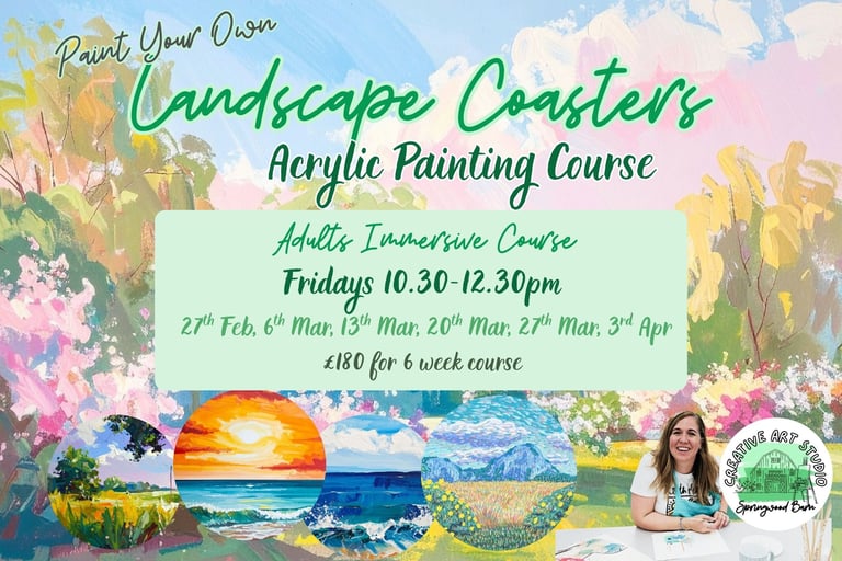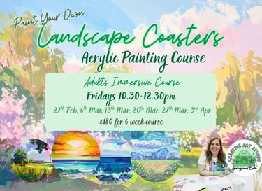 Discover the expressive power of acrylic landscapes, inspired by the vibrant styles of Paul Cézanne, Camille Pissarro, and Vincent van Gogh. This immersive six-week course invites you to explore the natural world through colour, form, and brushwork, while creating a quadtych (4 series set) of acrylic-painted coasters that reflect a landscape of your choice. With a maximum of eight students per class, you’ll enjoy focused guidance and a warm, supportive learning environment designed to nurture both confidence and creativity.